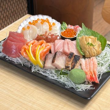 Otoro, tuna, uni, salmon, scallop, ikura, amaebi, hamachi tataki