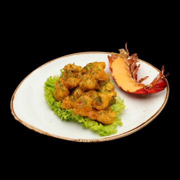 Tenkasu, togarashi, gochujang mayo, chili oil, ebiko, sesame seeds