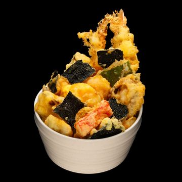 Salmon, anago, ebi, kani, tamago & vegetable tempura, tendon sauce
